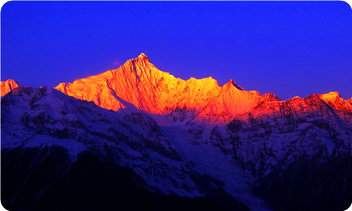 早起后在飛來寺看梅里雪山的日出日照金山,早餐后,驅(qū)車從飛來寺出發(fā),經(jīng)過瀾滄江大橋, 一個(gè)小時(shí)左右將到達(dá)明永村。從明永村開始徒步地球上罕見的低緯度、低海拔的明永冰川。按本地居名的說法:這是座神山,上冰川朝圣必須步行上山以示心誠,但明永冰川實(shí)在是險(xiǎn)峻無比,因此上明永冰川需要借藏民的幫助用騾子和馬牲口載上去(只能載一程路,徒步來回四到五個(gè)小時(shí))?;乇甲訖谧∷?。住:奔子欄標(biāo)準(zhǔn)間。