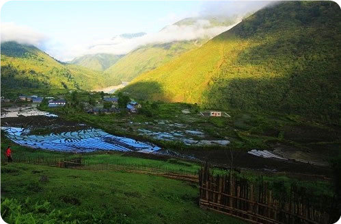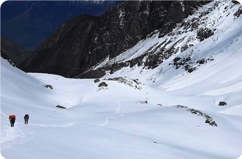 多雄拉山口海拔4,221米,翻越它的過程相當(dāng)艱難,從寒冷的冰雪世界,到濕潤悶熱的亞熱帶叢林;從山頂?shù)睦渖紭?,到叢林中的野芭蕉,一天之?nèi),你可看到不同自然帶的明顯變化。不算難走,但坡度較大。從海拔1,000多米一直上到海拔4,000多米的多雄拉山口需要3小時(shí)左右的時(shí)間。從這里到營地拉格要2個(gè)多小時(shí)。拉格是一個(gè)由幾個(gè)簡易木屋棚組成的接待站。全天徒步20公里。?。豪窠哟?。