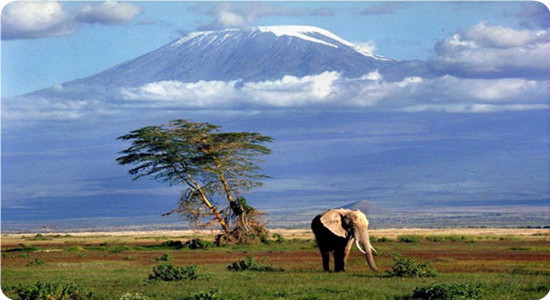 乞力馬扎羅山是非洲的屋脊,位于坦桑尼亞的北端和肯尼亞交界的地方,山頂終年積雪,成為赤道附近的一個壯麗的風(fēng)景,也是地球上唯一位于赤道線上的雪峰;而著名作家海明威的小說《乞力馬扎羅的雪》更是讓這座神奇的山永存于人們的想象中。生長在這里的植物動物都很具特色,5896米高的乞力馬扎羅不僅僅是非洲的高山,更以獨(dú)特的地理風(fēng)貌著稱世界。山腳下便是世上養(yǎng)育萬千動物的草原馬賽馬拉。從山腳到山頂大約二、三十公里的路程上,可以看到相當(dāng)于陸地上從赤道到北極大約一萬多公里的氣候類型。籠統(tǒng)地說,乞力馬扎羅可以分成四層,最下面一層是熱帶雨林,中間的腰部有一條沼澤地帶,再上面是高原沙漠,而頂部,超過了雪線以上的地方則是高山雪峰。遠(yuǎn)遠(yuǎn)地看,乞力馬扎羅就像一位拖著長長的灑地的綠裙,系了一條細(xì)細(xì)的腰帶,身著緊身淡黃襯衫,頭上俏皮地戴了頂白色小帽的青春少女。