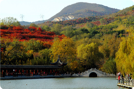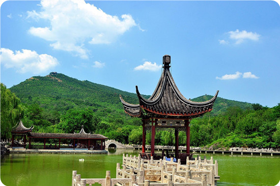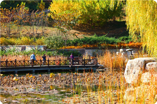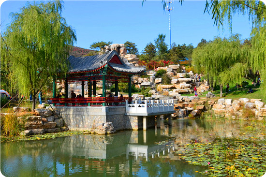 公園境內(nèi)地形起伏、坡峰錯落、溝谷幽深、林木茂盛、山水相依、鳥語花香。主峰狼坡頂巍峨挺拔,雄偉壯觀,海拔349.8米。公園總面積9.145平方公里,由東部、西部和中部三大景區(qū)和北宮山莊、茗盛樓兩組近10000平方米的配套設(shè)施組成。園內(nèi)有12處亭、廊、閣、塔等人文景觀,以及芳澤溪、小江南、楓林路、樺林溝等15處景點(diǎn)。綠化美化面積3000畝,優(yōu)質(zhì)樹種21種3.6萬株,野生花卉30余種5萬余平方米,園內(nèi)植物種類達(dá)到253種,形成了首都西部生態(tài)建設(shè)中的亮點(diǎn)。