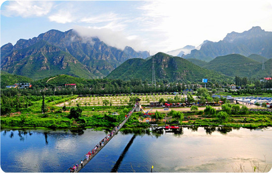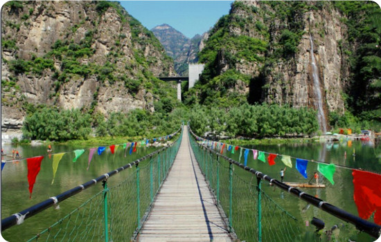 東湖港風(fēng)景區(qū)位于北京房山世界地質(zhì)公園十渡園區(qū)十五渡,與野三坡毗鄰距市區(qū)106公里。景區(qū)內(nèi)翠綠的檀林,蜿蜒的千年古藤遍布整個(gè)峽谷,蜿蜒小道曲折而上,潺潺小溪足下流淌,頗具詩意。奇特的“三疊瀑布”落差115米,自女兒泉急流直下,水霧隨風(fēng)飄落,如銀河般掛在峭壁上。有“登云梯而覽群山”之勢。這里以瀑高、潭多而享有盛名,素有“幽谷疊瀑、檀林氧吧”的美譽(yù)。另有夫妻峰、元陽峰、東湖巨佛、石刻畫廊、嫦娥伴金蟬、觀音洞等十余處景觀。東湖港風(fēng)景區(qū)是AAAA級景區(qū)。