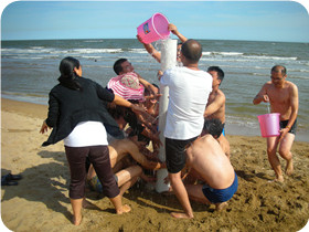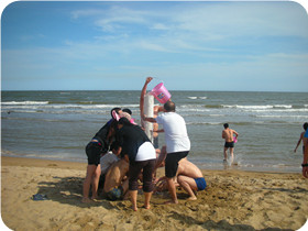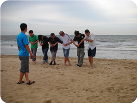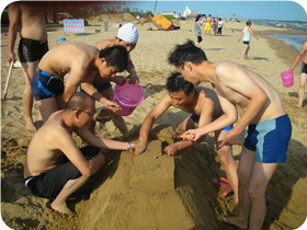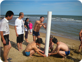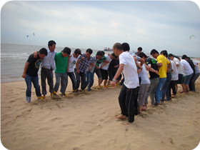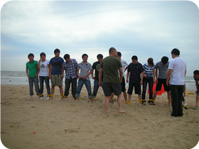 客戶名稱:新松天潤裝飾公司 活動時間:2011年9月 活動人數:30人 活動地點及形式:河北秦皇島碧海藍天—海邊拓展 活動項目:龍行天下 超音速 沙灘搶險 扎筏求渡 DIY沙雕 活動描述:由新松天潤建筑工程有限公司組織,天地之美戶外拓展訓練公司承辦,在河北秦皇島碧海藍天展開了兩天一夜的海邊拓展,在活動中首先每個隊員要相互信任,認真做好身邊的每一件事,這樣才會有強烈的責任心和奉獻精神。其次,團隊要從整體著眼,具體問題具體分析,并根據個人的能力,分工明確,此外還要鼓勵創(chuàng)造性的思維方式,充分發(fā)揚團結協(xié)作的精神。 |