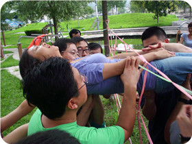 客戶名稱:北京紡織貿(mào)促會 活動時間:2013年7月 活動人數(shù):38人 活動地點及形式:河北野三坡百里峽景區(qū)—場地拓展 活動項目:龍行天下 穿越雷陣 穿越電網(wǎng) 精準(zhǔn)投遞 活動描述:由北京紡織貿(mào)促會組織,天地之美戶外拓展訓(xùn)練公司承辦,在河北野三坡百里峽景區(qū)展開了一天的場地拓展培訓(xùn),在培訓(xùn)中使我深刻的認識到:人只有銳意進取,與時俱進,并把自己的一切與團隊融入在一起,以貢獻自己,展現(xiàn)團隊精神風(fēng)貌,凝聚團隊力量,才能使我們團隊在激烈的市場競爭中永遠立于不敗之地. |