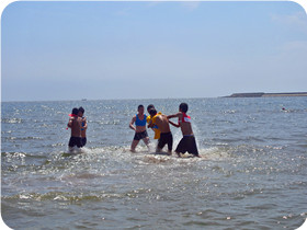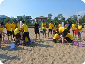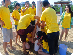 客戶名稱:鑫富匯通金融投資集團(tuán) 活動(dòng)時(shí)間:2015年9月 活動(dòng)人數(shù):28人 活動(dòng)地點(diǎn)及形式:河北秦皇島—海邊拓展 活動(dòng)項(xiàng)目:搶灘登陸 扎筏求渡 羅馬炮架 撕名牌 活動(dòng)描述:由鑫富匯通金融投資集團(tuán)組織,天地之美戶外拓展訓(xùn)練公司承辦,在河北秦皇島展開(kāi)了一天的海邊拓展活動(dòng),在活動(dòng)中我們已經(jīng)沒(méi)有了組別界限、沒(méi)有了男女界限,已經(jīng)不是一個(gè)個(gè)獨(dú)立的人,而是由許多個(gè)人組成的一個(gè)堅(jiān)不可摧的團(tuán)隊(duì),真真切切體會(huì)到了“團(tuán)隊(duì)可以創(chuàng)造奇跡” |