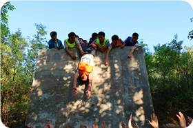 客戶名稱:陜西巨豐投資資訊有限公司 活動(dòng)時(shí)間:2017年5月6日 活動(dòng)人數(shù):50人 活動(dòng)地點(diǎn)及形式:昌平鮮果樂(lè)園度假村拓展基地+一日?qǐng)龅貞敉馀嘤?xùn) 活動(dòng)項(xiàng)目:穿越電網(wǎng) 高空挑戰(zhàn) 信任背摔 超音速 畢業(yè)墻 活動(dòng)描述:由陜西巨豐投資資訊有限公司組織,由天地之美戶外拓展訓(xùn)練公司承辦,在這次的拓展活動(dòng)中在規(guī)定時(shí)間內(nèi)完成了所有任務(wù),讓大家深刻的理解到一個(gè)人的力量是微不足道的,只有目標(biāo)統(tǒng)一,團(tuán)結(jié)協(xié)作,相互支持,并肩作戰(zhàn)的團(tuán)隊(duì)的力量才是強(qiáng)大的,是戰(zhàn)無(wú)不勝的。一個(gè)人,要有一顆愛(ài)心,要有一顆感恩的心。要做人梯,勇于奉獻(xiàn)?!翱部廊松贰?、“翻越求生墻”就充分體現(xiàn)了這一點(diǎn)。 |