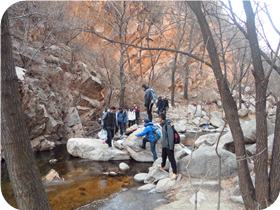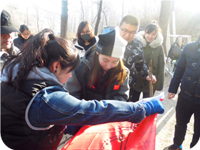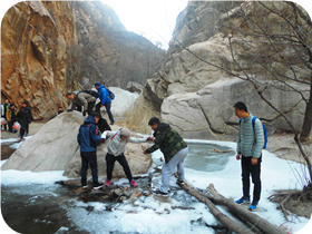 活動時間:2018年11月30日 活動項目:狹路相逢 T字之謎 鉆木取火 活動描述:由石景山業(yè)余大學(xué)組織,天地之美戶外拓展訓(xùn)練公司承辦,在延慶水泉溝峽谷展開了一天的戶外拓展培訓(xùn)活動。戶外拓展訓(xùn)練是一種自信的表現(xiàn),意味著在野外拓展訓(xùn)練中我們每個人都將挑戰(zhàn)自我。給你的是成功的信心、給你生活無限的力量。拓展培訓(xùn)是團(tuán)隊精神和積極進(jìn)取的人生態(tài)度的體現(xiàn),是現(xiàn)代人最基本素質(zhì),是我們生活中的必修課。