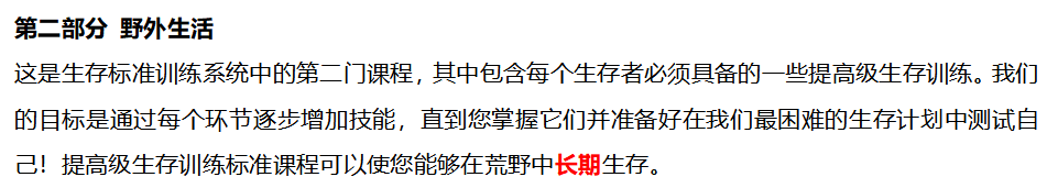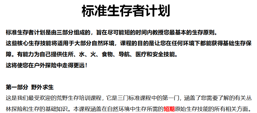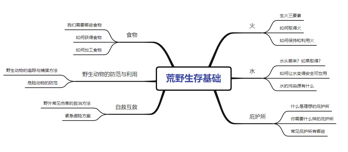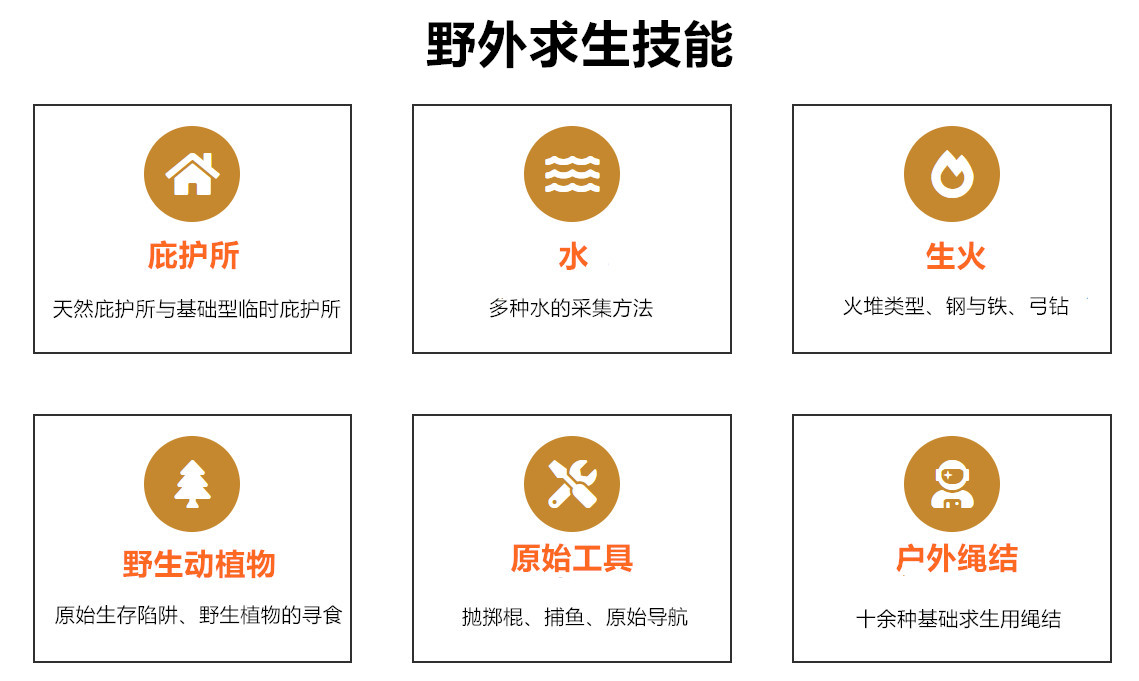 另 針對戶外運動專業(yè)大專院校 我們推出了若干求生類理論課程,課程分為基礎(chǔ)性的以下六大類: